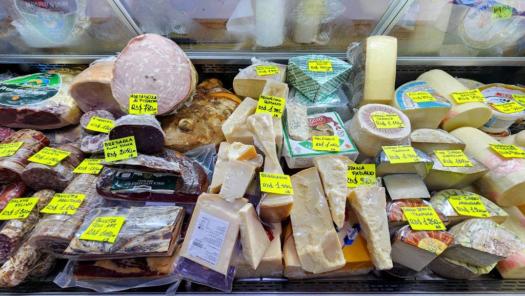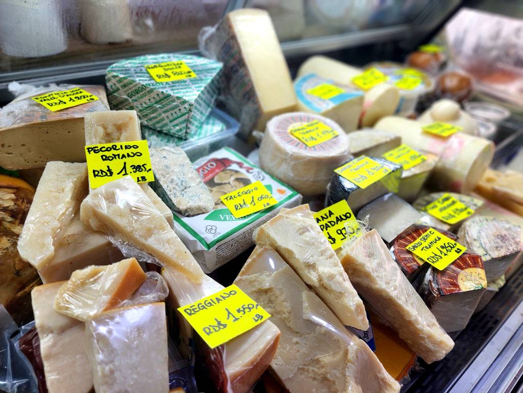 – Quesos de excepción: mozzarella, pecorino romano, parmigiano reggiano, grana padano, taleggio, gorgonzola dolce, provolone piccante, asiago, mascarpone, fontina, brie, emmental y muchos otros tesoros afinados importados directamente.