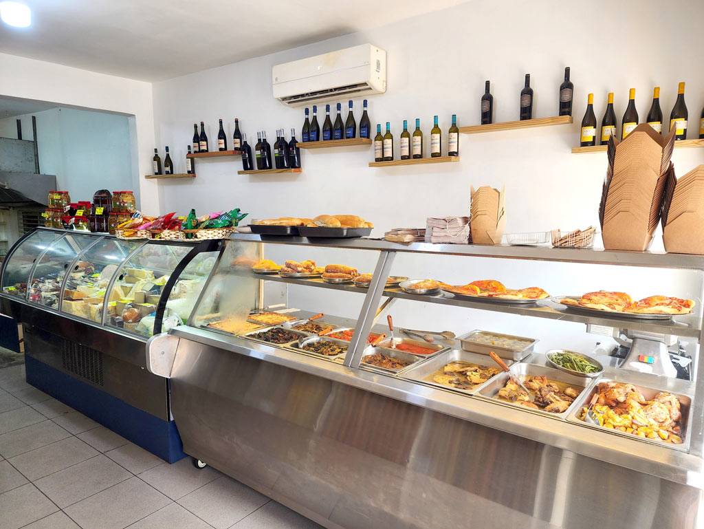 – Delicatessen: aceites de oliva (500ml a 5L), vinagres balsámicos y aromatizados, pastas artesanales y ñoquis, galletas dulces (con miel, chocolate, almendras), mermeladas, caramelos italianos, panes frescos hechos cada mañana…