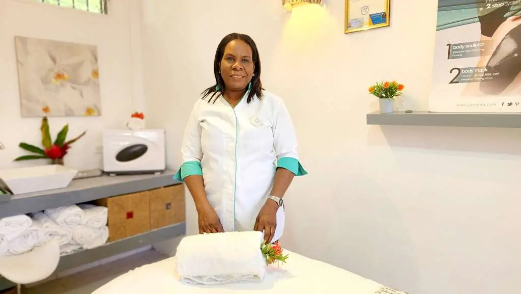 En un ambiente cálido y agradable, Nieves se complace en darle la bienvenida en su salón en la plaza Rosada en Las Terrenas. Más de 20 años de experiencia en la estética y masajes, Nieves le da la bienvenida en un lugar bien hecho para su bienestar.