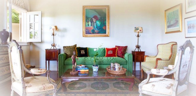 En septembre 2007, Peninsula House, exquis manoir victorien, affiche enfin toute sa splendeur dans son écrin naturel. Semblable aux maisons coloniales des riches planteurs, l’intérieur d’un extrême raffinement remplit parfaitement sa mission et accueille avec bonheur tous les trésors de ses propriétaires. Il a fallu pas moins de 4 containers pour ramener de France la sublime collection de meubles, tableaux, objets de déco, miroirs, sculptures, luminaires, vaisselle, tapis…. mais aussi un choix virtuose de linge de lit et de robinetterie. Sur deux niveaux bordés de larges terrasses dominant le panorama époustouflant, une salle à manger rustique, une salle de billard glamour, une délicieuse bibliothèque, une cuisine cosy, des coins salons éparpillés autour du patio central ouvert sur le ciel et 8 suites élégantes et romantiques, toutes différentes dont deux réservées aux propriétaires et à Thomas, le fils de Marie-Claude qui, depuis quelques années, en dépit de ses brillantes études, fait lui aussi partie de l’aventure.