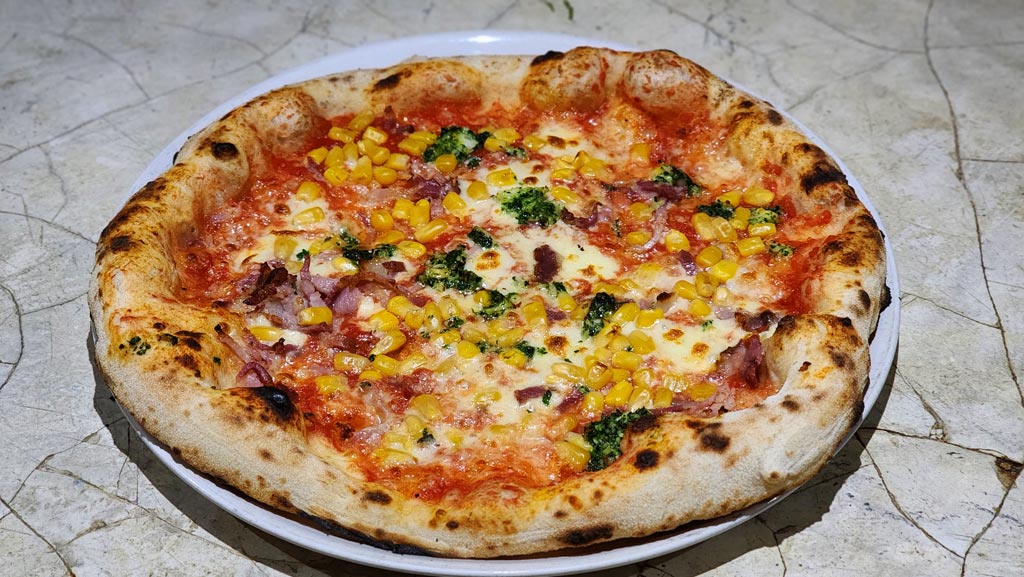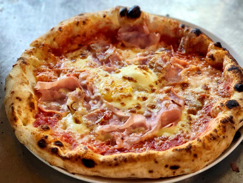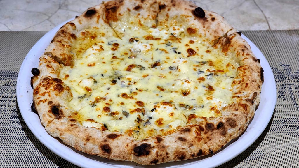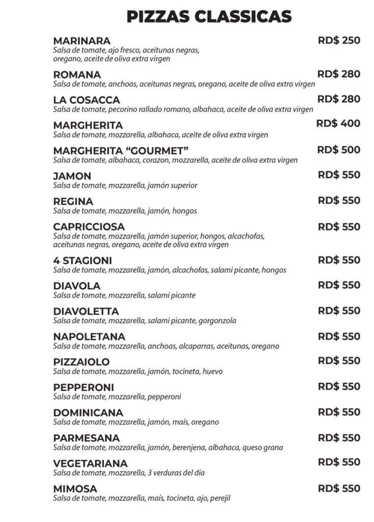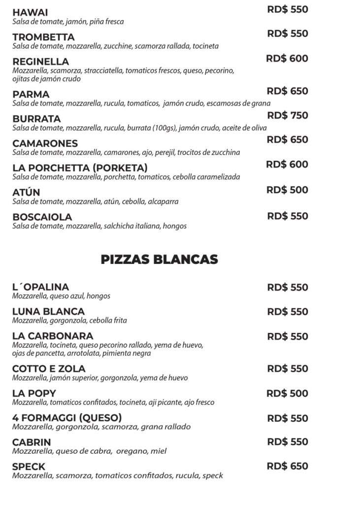 La masa se elabora de forma artesanal, utilizando harina, tomate y mozzarella de origen italiano. Cada pizza se cuece en horno de leña, respetando la tradición napolitana ! En el menú encontrarás pizzas clásicas, pizzas blancas y calzones, siempre preparados con cuidado y sabor auténtico.