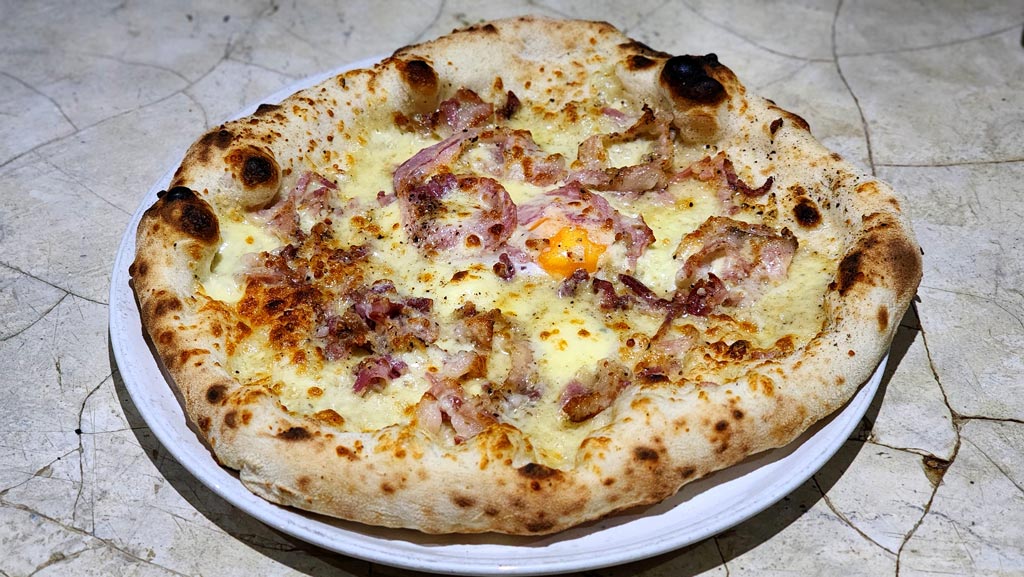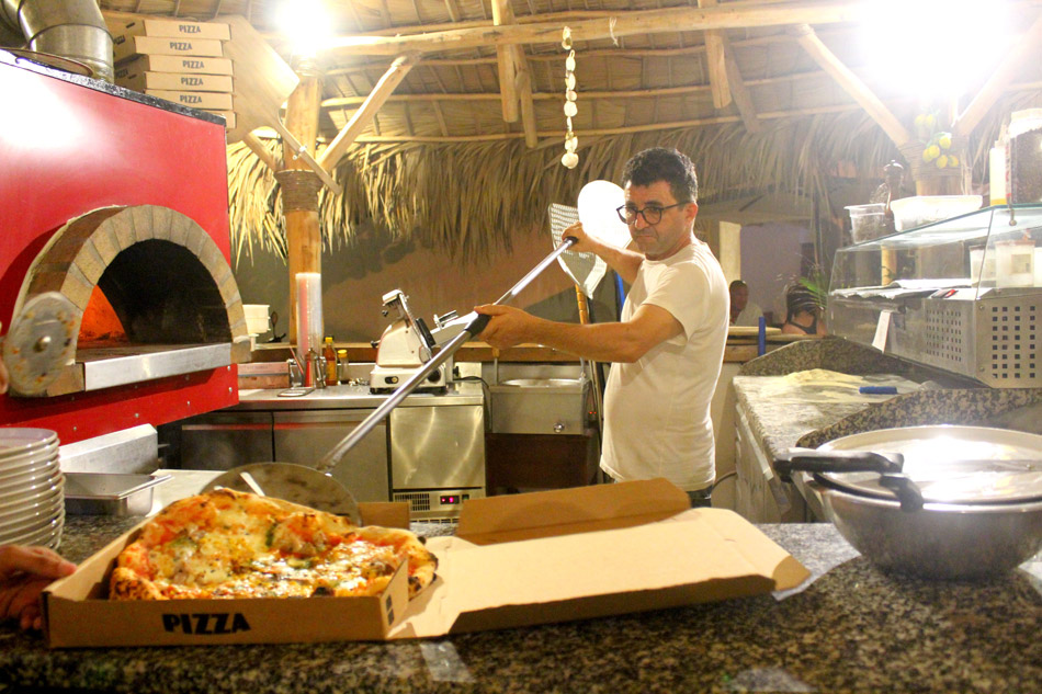 Su pizzería, frente a la playa de Punta Popi, es famosa por sus pizzas napolitanas auténticas, cocidas en horno de leña y preparadas con ingredientes italianos y vegetales frescos locales.