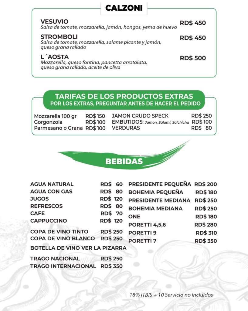 También hay opciones vegetarianas con ingredientes como zucchini y berenjena. Y si tienes un antojo especial, Raffaele estará encantado de preparar tu pizza a tu gusto.